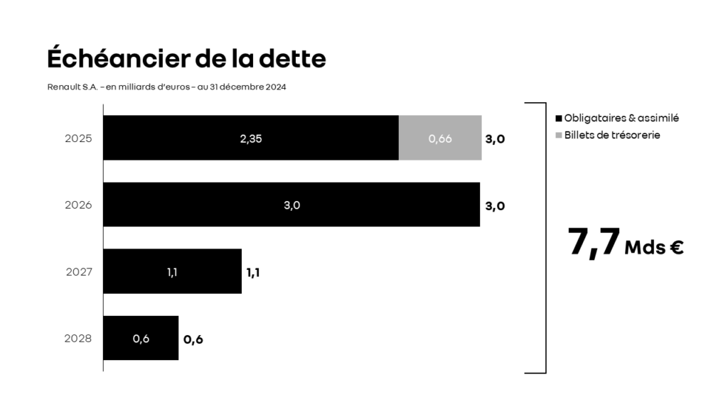 Echéancier des emprunts obligataires, bancaires et assimilés de Renault SA (incluant les NEU CP, excluant le titre participatif).