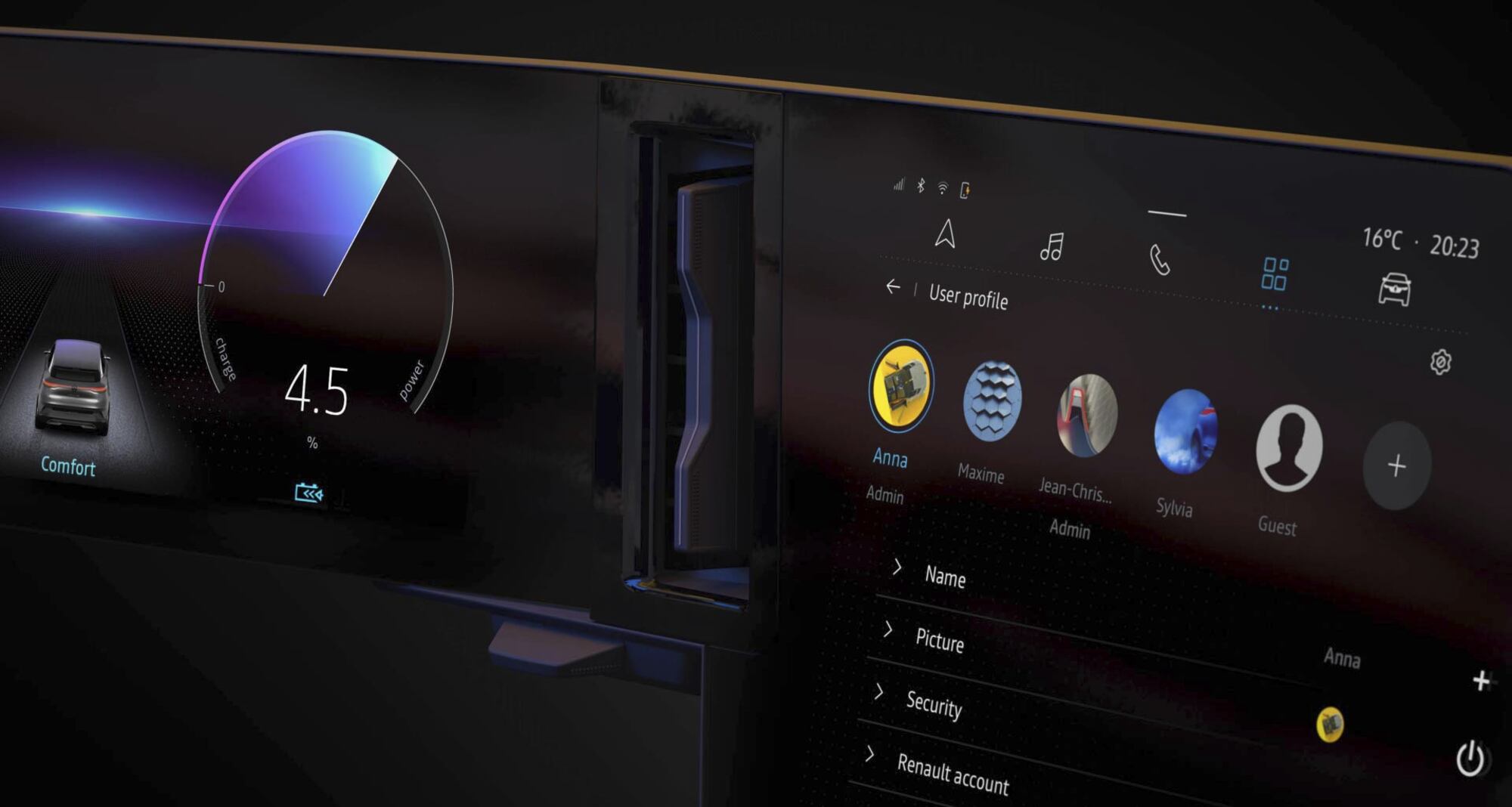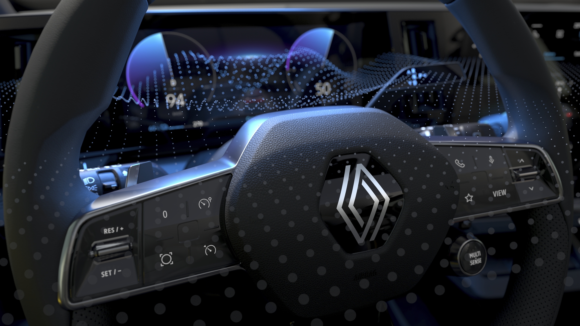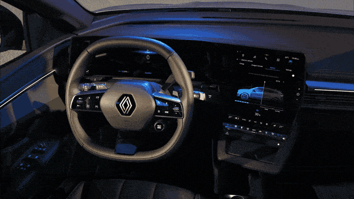 Cette prouesse technique coïncide avec l’arrivée de la toute nouvelle plateforme CMF-EV, dédiée aux véhicules électriques. Grâce à elle, les ingénieurs ont par exemple pu repousser le bloc de climatisation dans l’habitacle moteur pour gagner de l’espace dans le cockpit. Cela a permis d’affiner la planche de bord et d’intégrer un écran flottant. De même, la commande du levier de vitesses et le bouton MULTI-SENSE ont été déplacés au niveau du volant pour une meilleure ergonomie et libérer de la place au centre de l’habitacle ainsi que sur la console centrale. Si la tendance actuelle du secteur automobile est d'aller vers le tout écran, Renault a choisi un autre chemin, plus subtil :